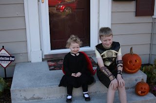 Anika and Theo sit out front and get there picture taken just before going trick-or-treating.